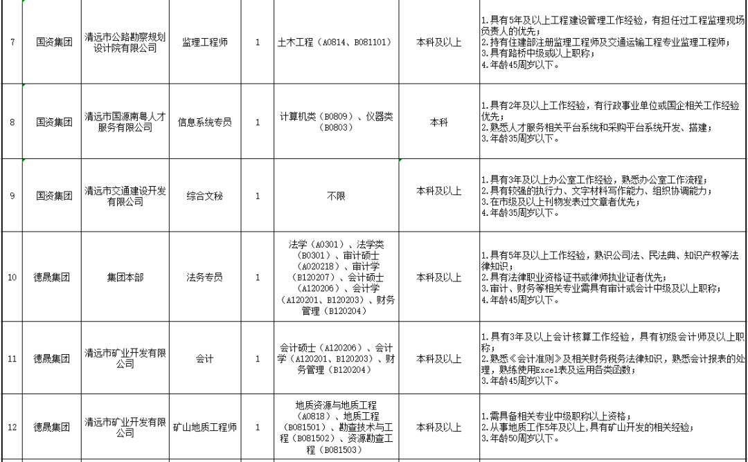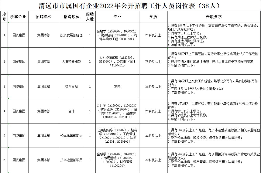 詳見(jiàn)清遠(yuǎn)市市屬國(guó)有企業(yè)2022年公開(kāi)招聘工作人員崗位表。