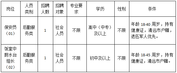 清遠市清城區(qū)機關事務管理局因工作需要,根據《關于印發(fā)<清遠市清城區(qū)機關事業(yè)單位專項工作聘員、合同制聘員以及后勤服務類人員管理辦法>的通知》(城區(qū)人社〔2022〕20號)文件精神,面向社會公開招聘后勤服務類人員2名,現將有關事宜公告如下: