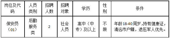 清遠市清城區(qū)機關(guān)事務(wù)管理局因工作需要,根據(jù)《關(guān)于印發(fā)<清遠市清城區(qū)機關(guān)事業(yè)單位專項工作聘員、合同制聘員以及后勤服務(wù)類人員管理辦法>的通知》(城區(qū)人社〔2022〕20號)文件精神,面向社會公開招聘后勤服務(wù)類人員2名,現(xiàn)將有關(guān)事宜公告如下: